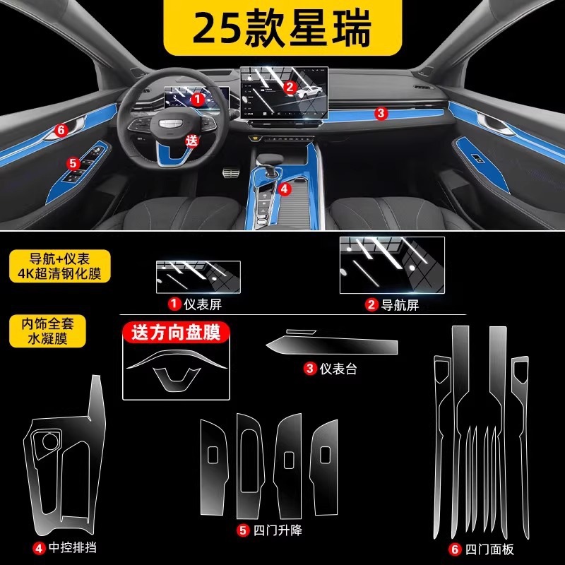 吉利星瑞インテリアスクリーン保護強化フィルム25枚、中央制御フィルム、車内装飾用品、改造部品、アクセサリー