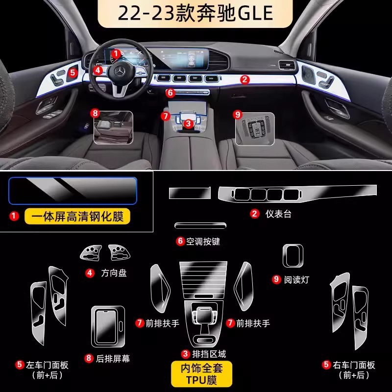 2024 メルセデスベンツ GLE インテリアフィルム 350 セントラルコントロールスクリーン 450 保護フィルム 車内改造装飾用品 23。
