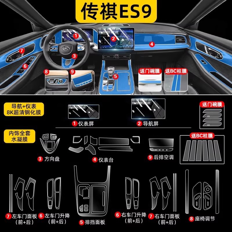 GAC Trumpchi E8 専用インテリアスクリーン保護強化フィルム中央制御フィルムカー用品改造アクセサリー伝説