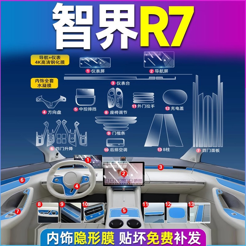 Huawei Zhijie r7 インテリアスクリーン保護強化フィルム中央制御フィルム特別な自動車用品修正アクセサリーに適しています