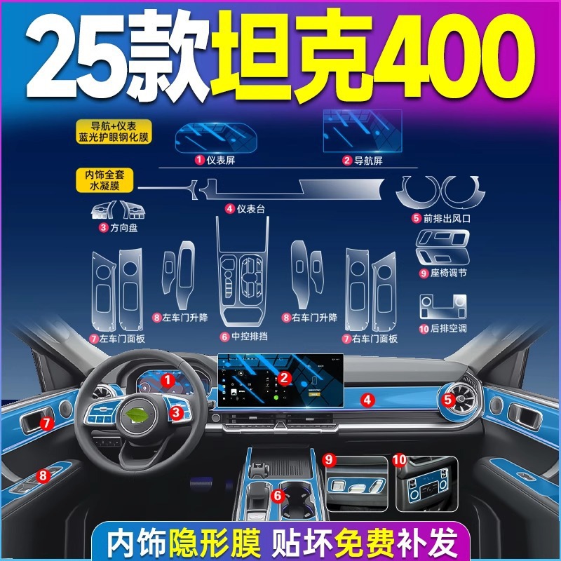 25 タンク 400 中央制御保護インテリアフィルムスクリーン強化フィルム車内特別な改造アクセサリー用品ブラック