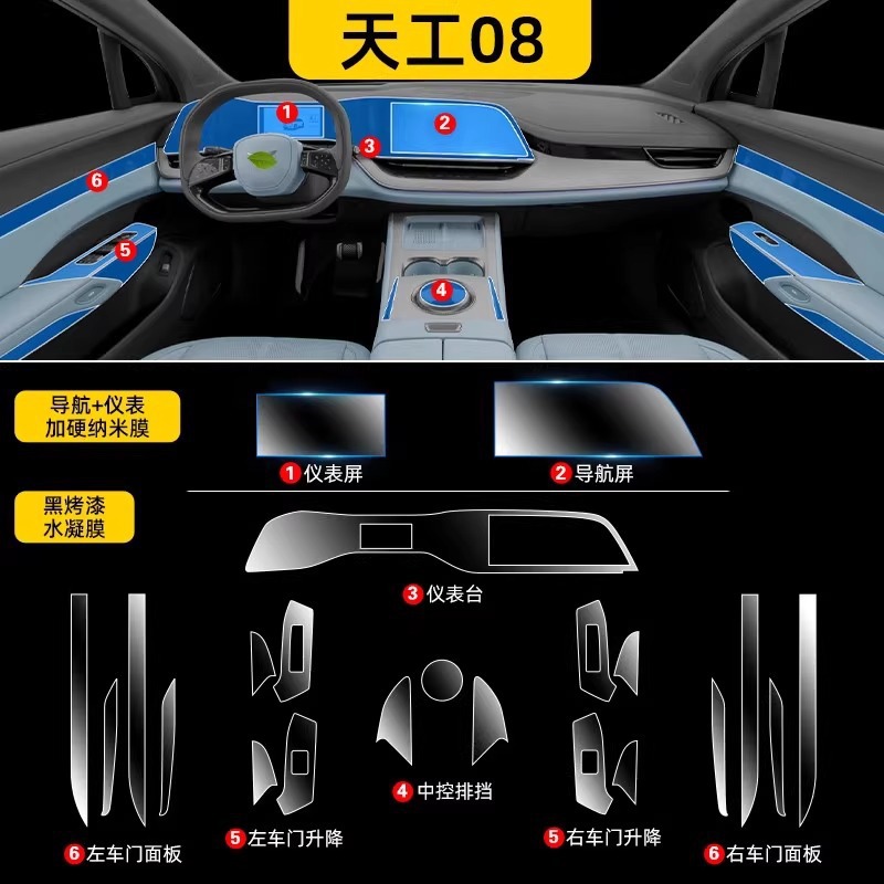 紅旗天公 08 インテリアフィルム中央制御保護スクリーン強化フィルム装飾改造用品アクセサリー天宮