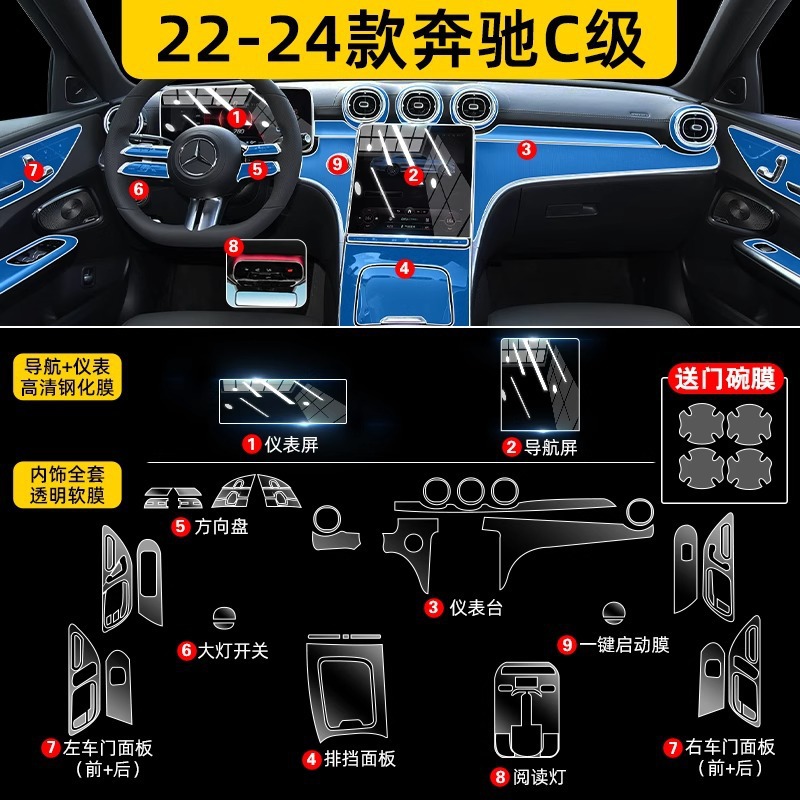 24 メルセデスベンツ C クラス C260L 中央制御フィルムインテリア保護スクリーンフィルム C200 車内装飾用品完全なステッカー