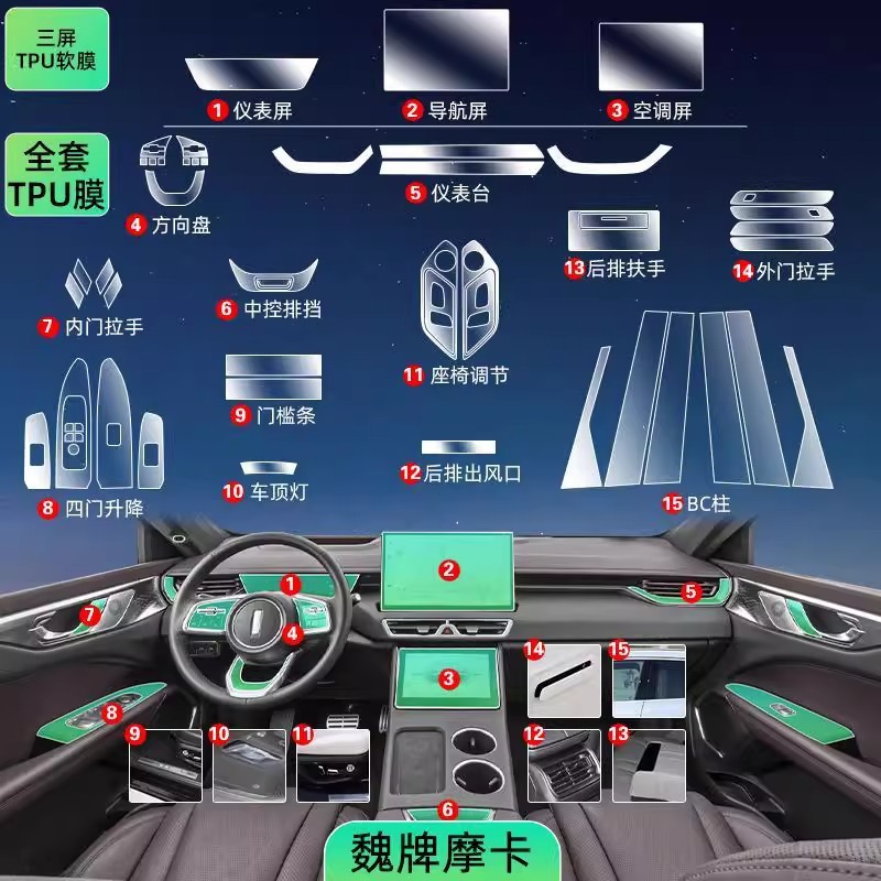 24種類の魏ブランド高山専用インテリアフィルム、スクリーンフィルム、中央制御保護フィルム、WEY用品、魏派新改造