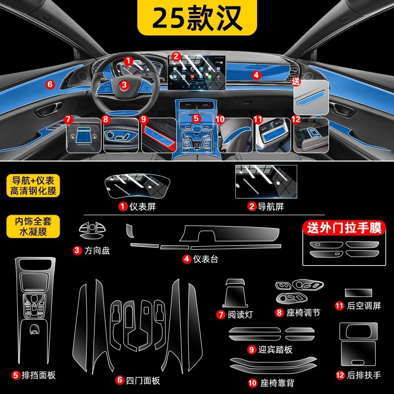 BYD Han dmi インテリア保護フィルム EV 中央制御スクリーン強化フィルム 車内装飾改造用品 25 個。