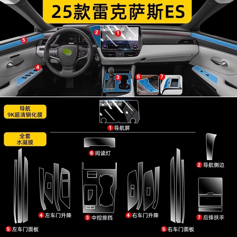 レクサス ES インテリア保護フィルム、中央制御スクリーン強化フィルム用品、24 アクセサリーに適した 25 個