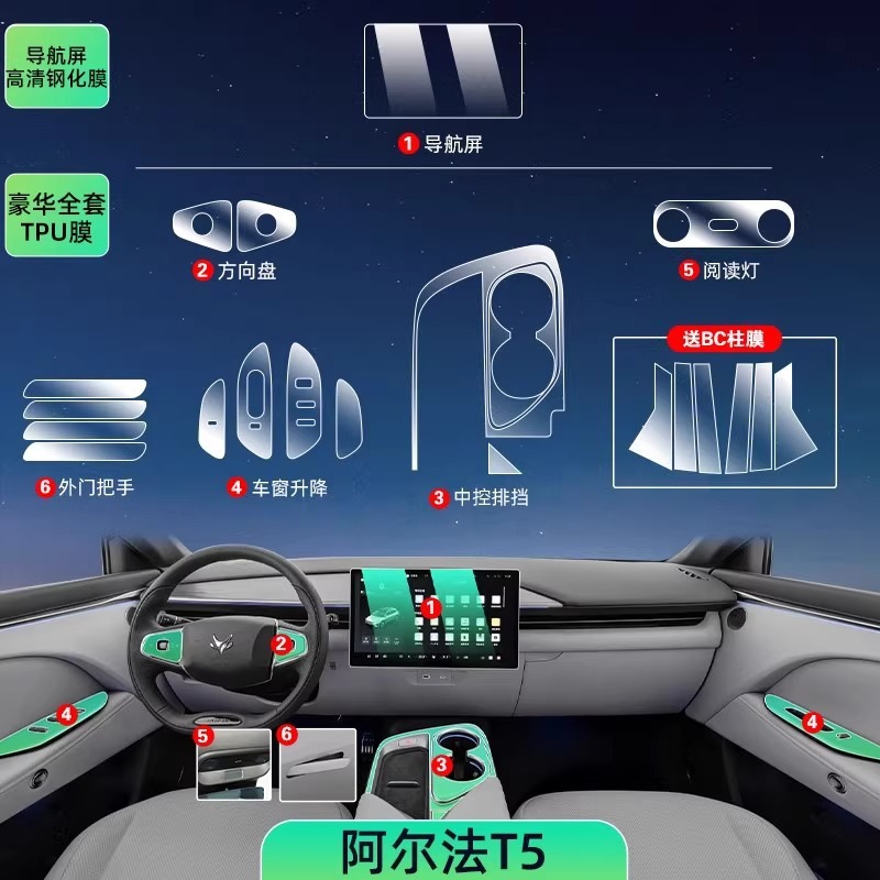 Jihu Alpha T5 内装保護 中央制御フィルム ナビゲーション画面 強化フィルム 車内用品 特殊改造