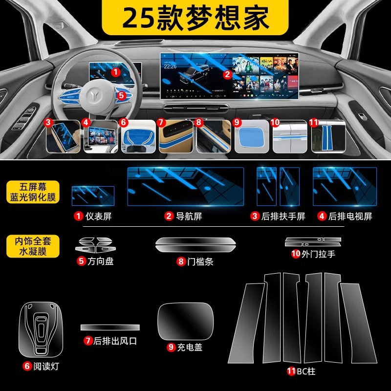Lantu Dreamer 専用スクリーンプロテクター 25枚、強化フィルム、内装中央制御フィルム、カー用品改造パーツ