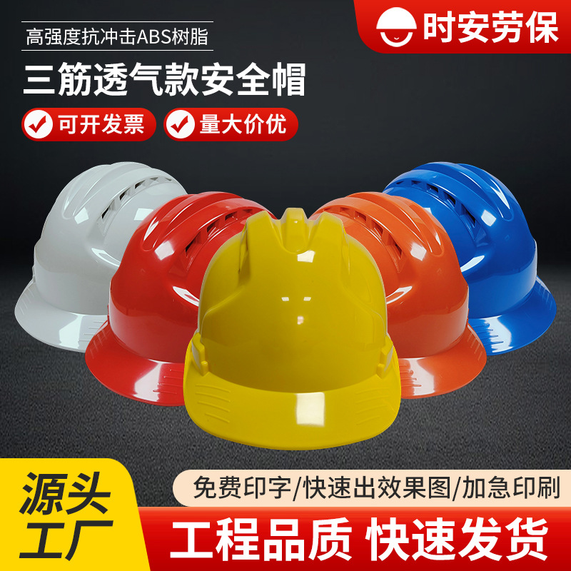 工場直送の安全ヘルメット、3本のリブ、ロゴのカスタマイズ、ABS素材、建設工事、エネルギー開発、労働保護など