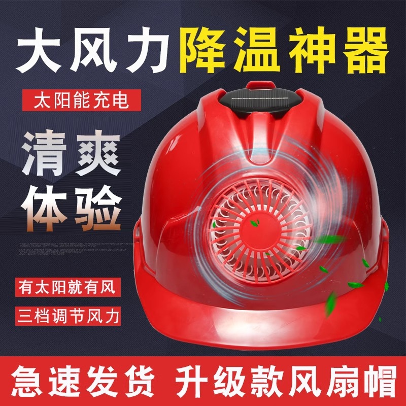 新しい国家標準 3 リブ安全ヘルメットファン充電式空調冷凍 Bluetooth ラジオ夏冷却建設現場ヘルメット