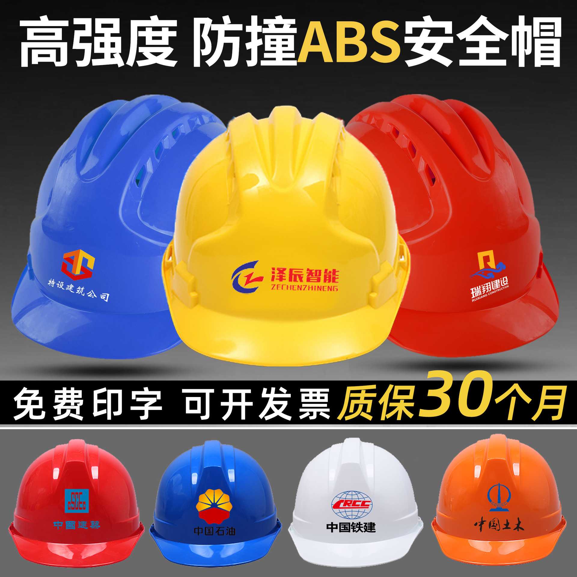 安全帽ABS国家規格工事現場安全帽厚型印刷工事安全帽工事現場通気性作業場安全帽