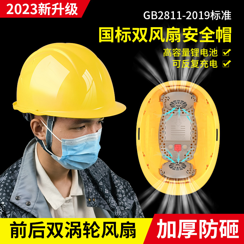 2025新国標ファンヘルメット工事現場は充電可能で、通気性が厚くなります。
