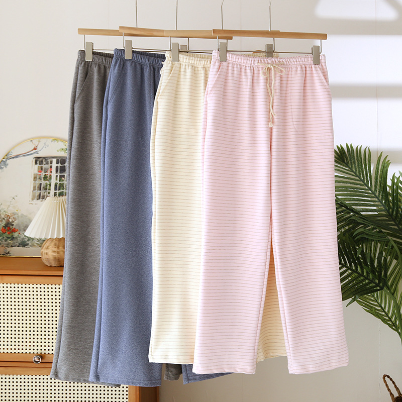 新型単層水洗綿カップル長ズボン夏の薄いタイプの男性女性の家のズボンの綿質のパジャマのメーカーは直接供給します。