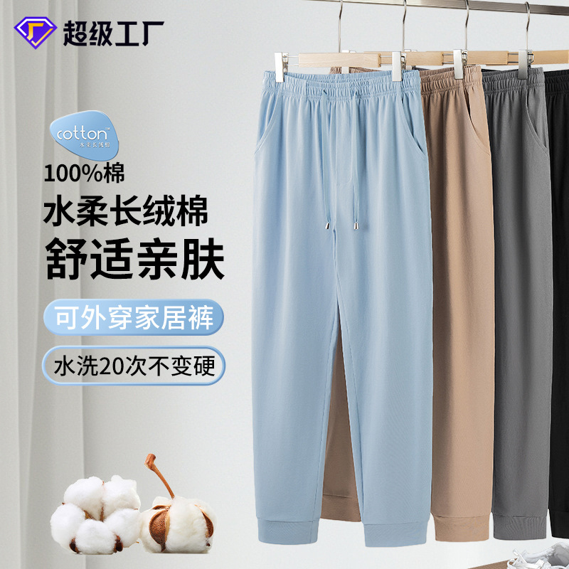 【水柔棉】新作メンズ秋冬用足首絞り付きパジャマパンツ、綿100%ホームパンツ、外出可、ドローストリング付きカジュアルパンツ