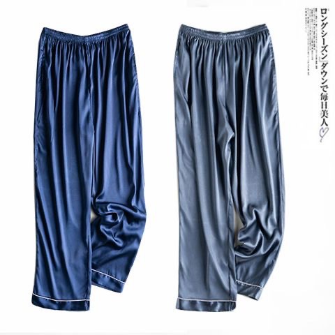 男性の氷糸長ズボンはシンプルな夏の薄いタイプの冷たい防蚊ズボンの家のレジャーズボンのエアコンの春と秋の家のズボンです。