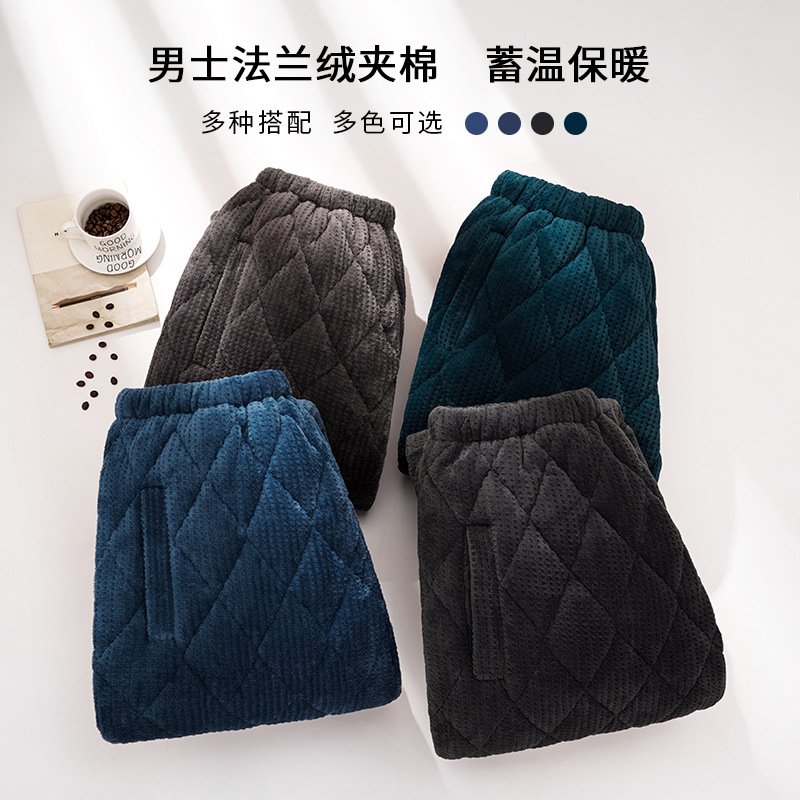 寝ズボンの男性は秋冬にサンゴのベルベットを厚くしてカジュアルで快適なズボンの三層に綿を挟んで春と秋に家のズボンを着ることができる