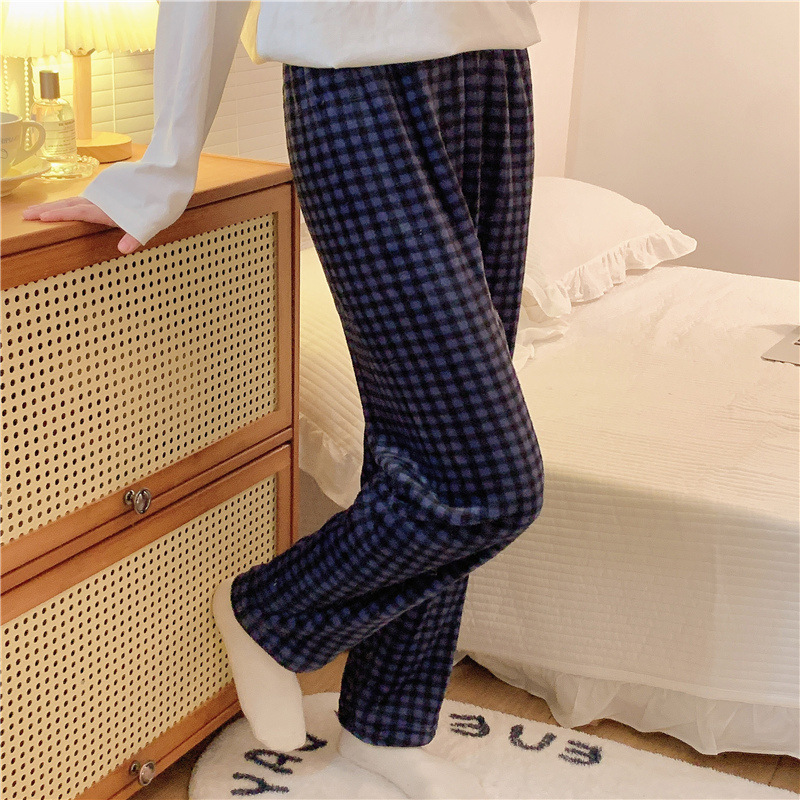 パジャマ冬の新型パジャマ女性フランネルの甘い高級感のある格子男性サンゴのベルベットのカップルのズボンの家のズボン