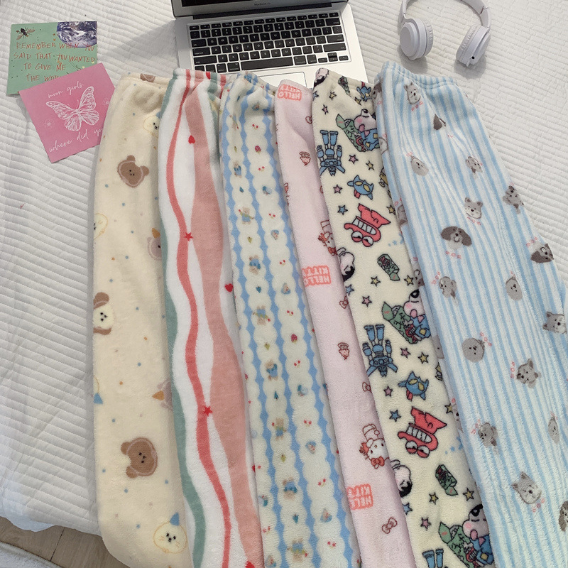 パジャマ冬の新型パジャマ女性フランネルアニメの甘い高級感が男性カップルのサンゴのベルベットの家のズボンを大きくする