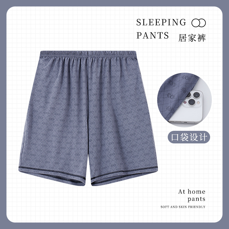 男性の睡眠ズボン夏の氷糸半ズボンの大きいパンツの男性の夏の家の薄いタイプの寝る大きいサイズのゆったりした家のズボン