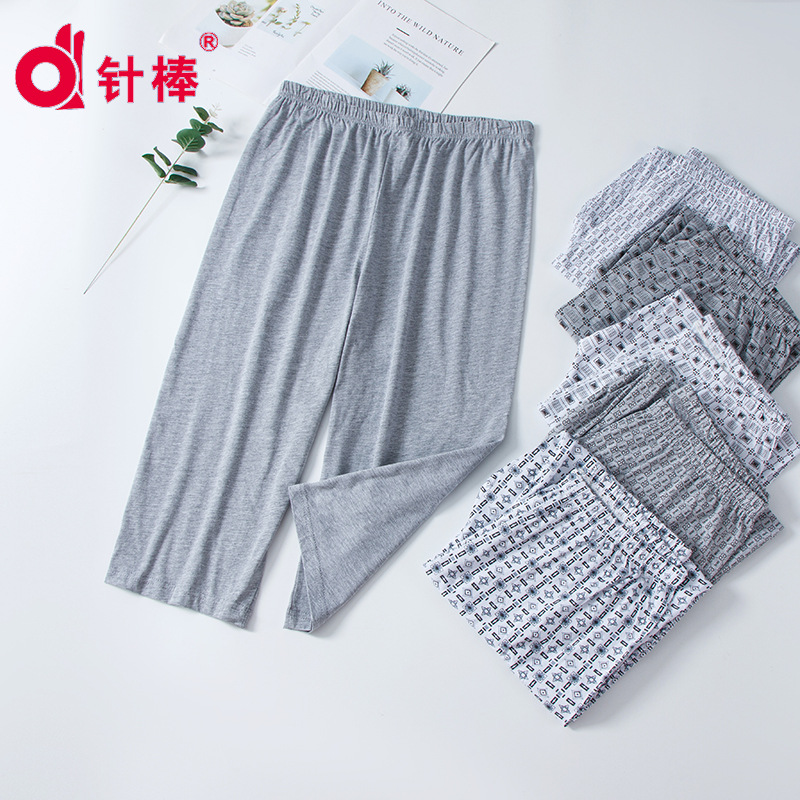 男性の汗布の寝ズボンの中で高齢者の春夏の家のズボンは太って大きいタイプのお父さんは7分のズボンを着ます。