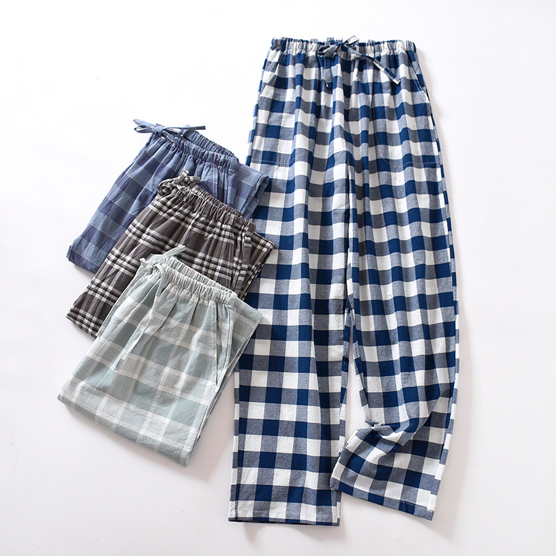 日系格子寝ズボンパンツ男夏の薄い綿のゆるい二重ガーゼ綿の家綿の綿糸家のズボン