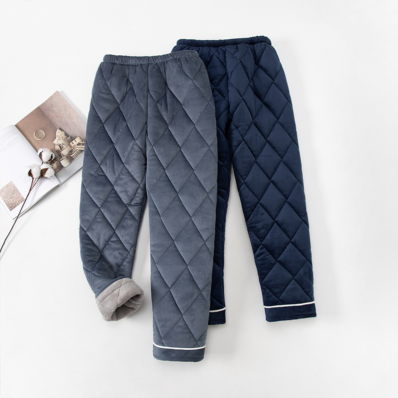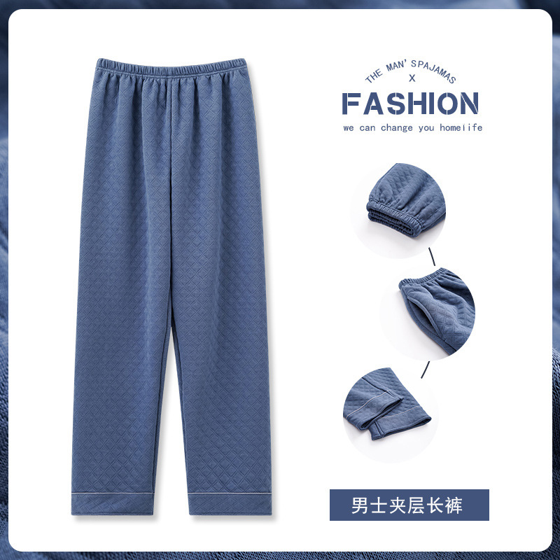 秋冬の新型の厚い空気綿の男性の睡眠のズボンの綿の質の綿のサンドイッチの保温の現物の越境する家のズボン
