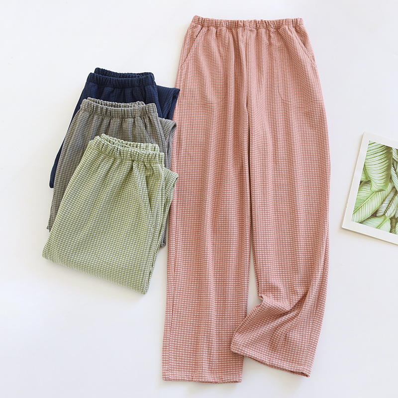 色織カップルパジャマ男性女性夏純綿ガーゼ薄いタイプのゆるいポケットパンツ家居ズボンビーチパンツ