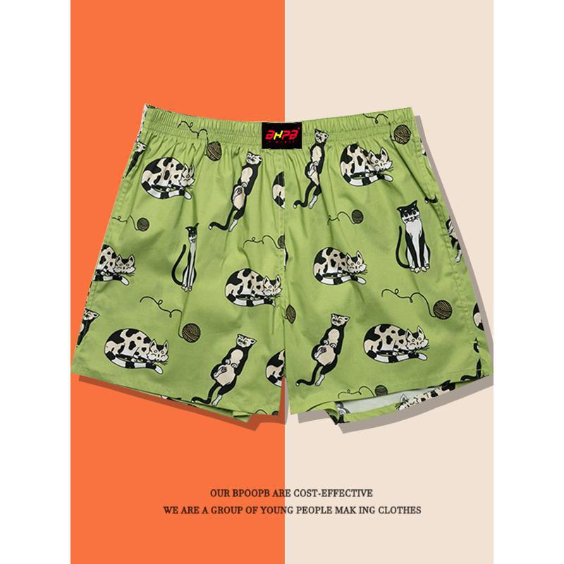 アローパンツカップルかわいい夏のホームショーツルーズ大きいサイズの下着メンズフラット四角アイスシルク漫画フラワーパジャマ