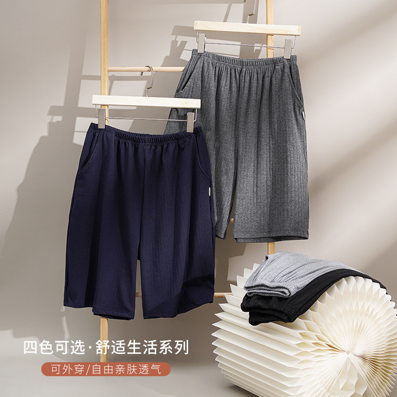 モーダル睡眠ズボン男性夏の薄いサイズの5分ビーチパンツ夏のカジュアルな服装はゆるいホームパンツを着ることができます