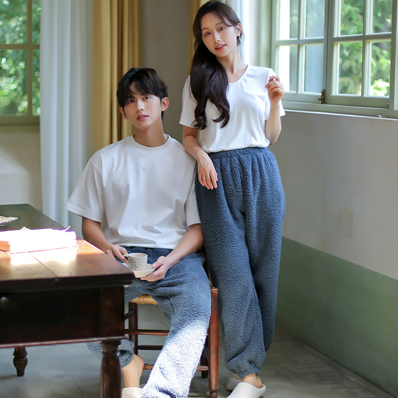 冬のカップルのパジャマの女性は、ベルベットのベルベットのズボンを厚くして、男性はフランネルの春秋パジャマの家の服を着ることができます