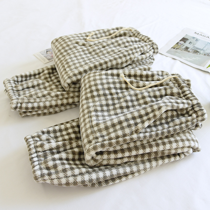 カップルのフランネルの寝ズボンの女性の秋冬の大きいサイズの長ズボンのサンゴの絨毛のズボンの直筒の男性のゆったりしている格子の家のズボン