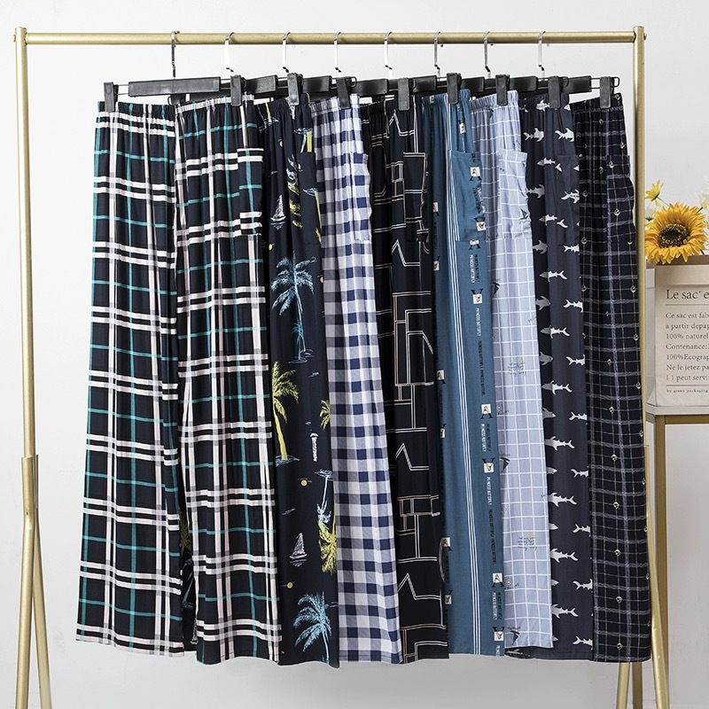 青少年の男性の睡眠のズボンの夏の薄いタイプの純綿の男性の睡眠のズボンのズボンのエアコンの部屋の男性の睡眠のズボンの男性の睡眠のズボンの卸売りの複数条