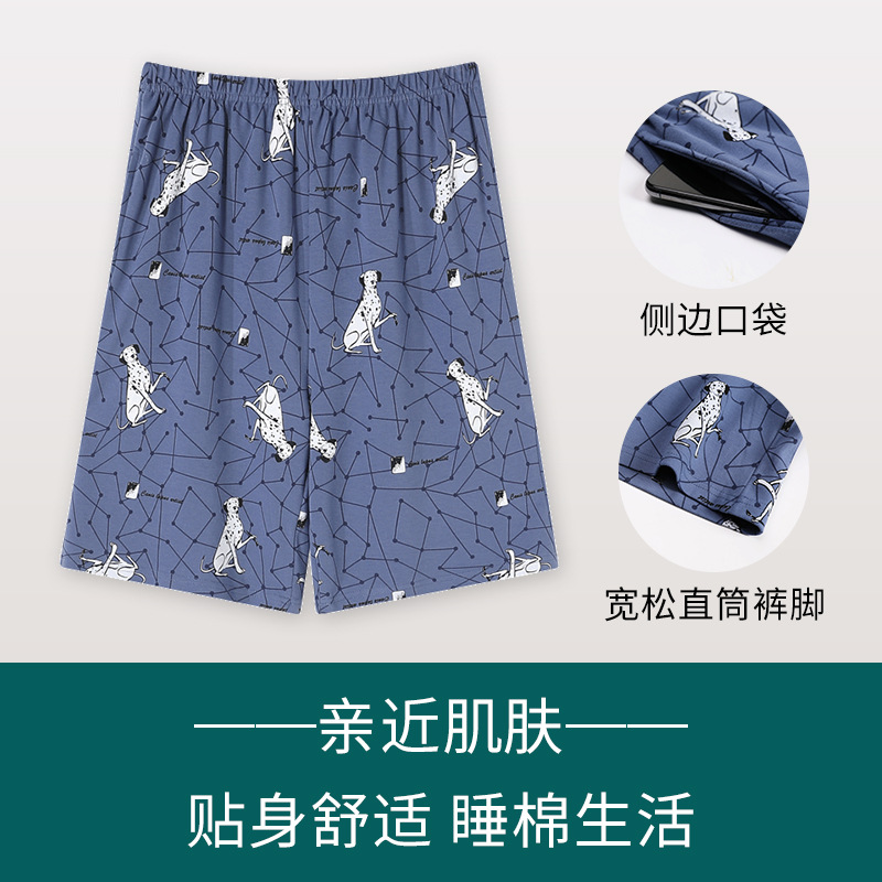 パジャマパンツ、純綿メンズショーツ、薄手綿ルーズホームスリーピングスポーツカジュアル5点パンツ、大きいサイズホームパンツ