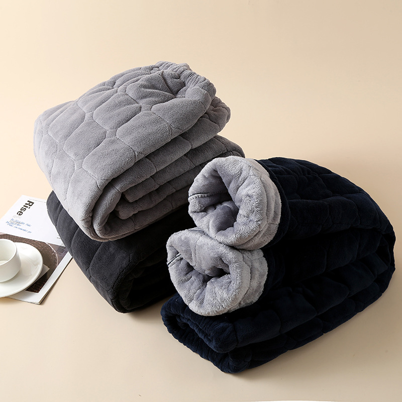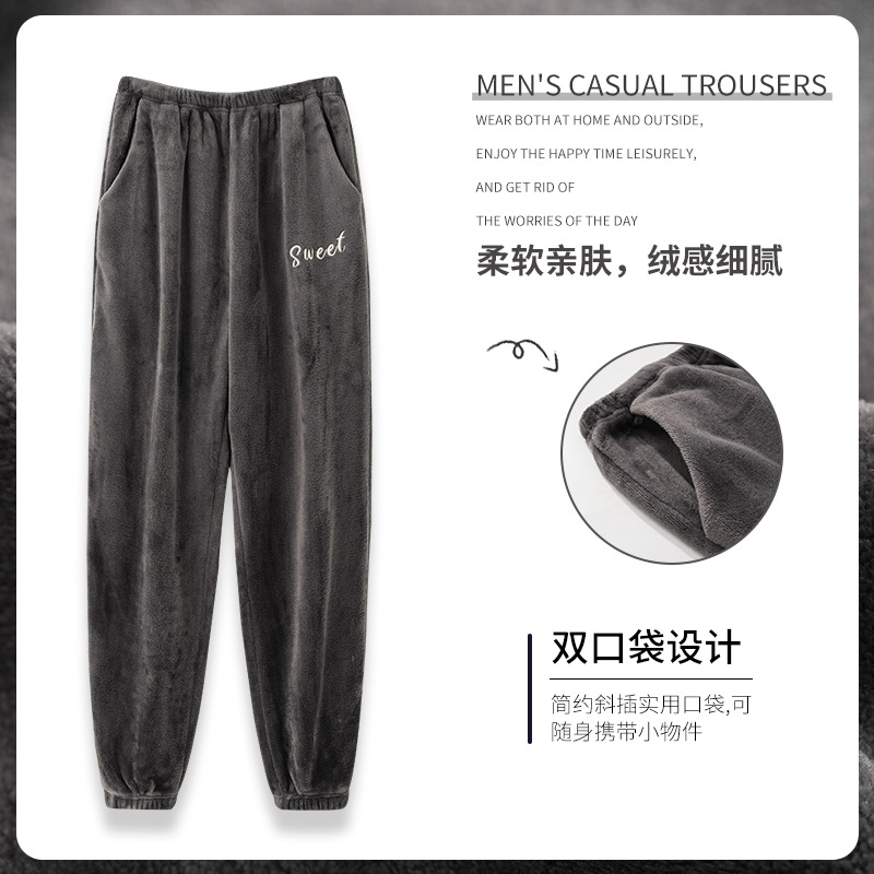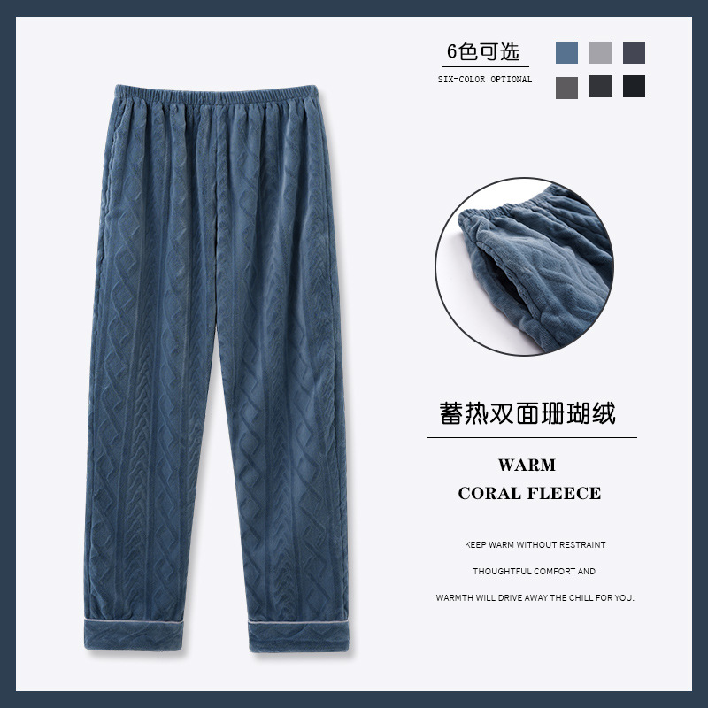 寝ズボンの男性は秋冬にサンゴのベルベットを厚くしてカジュアルで快適なズボンの三層に綿を挟んで春と秋に家のズボンを着ることができる