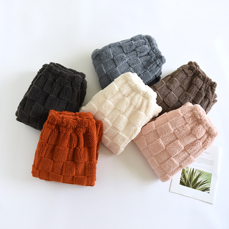サンゴのベルベットのズボンの女性の秋冬のズボンのベルベットの男性のフランネルのベルベットの厚い外に暖かいぬいぐるみの家のズボンを着ています