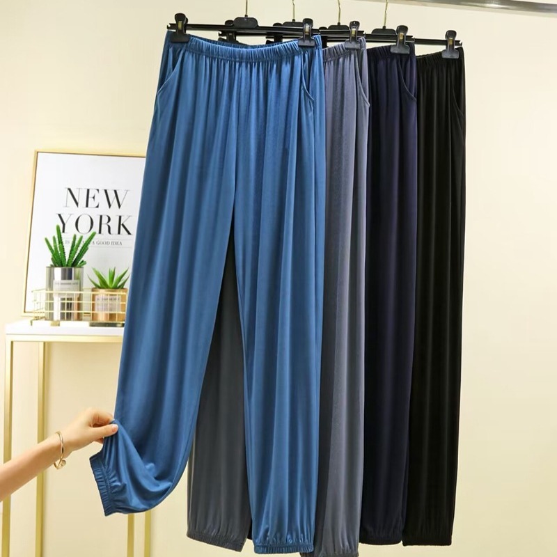 パジャマ男性のモーダルパンツ夏のホームパンツの薄いタイプのゆるい氷の冷たい感じのエアコンのホームパンツは外に着ることができます