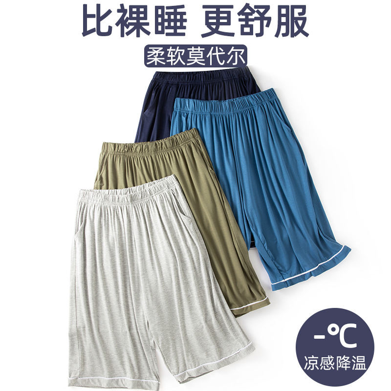 モーダル男性寝ズボン夏の薄い家庭用半ズボンの大きいサイズのゆったりした5分のズボンのシンプルな純色の大きいパンツ