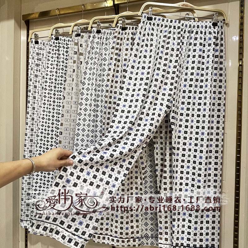 綿シルクパジャマメンズ夏薄いルーズプリント大きいサイズのズボンバケットハーネスブルマー人工綿ホームパンツ
