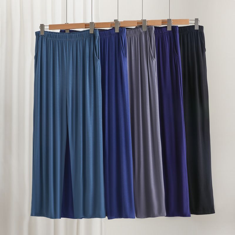 男性の家のズボンの春の夏の薄い金のゆったりしている広脚のストレートのズボンの外はモーダルの運動のレジャーの家の男性のズボンを着ます。