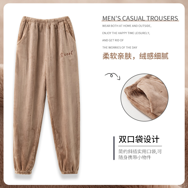 2024冬の新商品のフランネルの男性は、ベルベットのズボンを厚くして、ゆったりした家のズボンを着ることができる