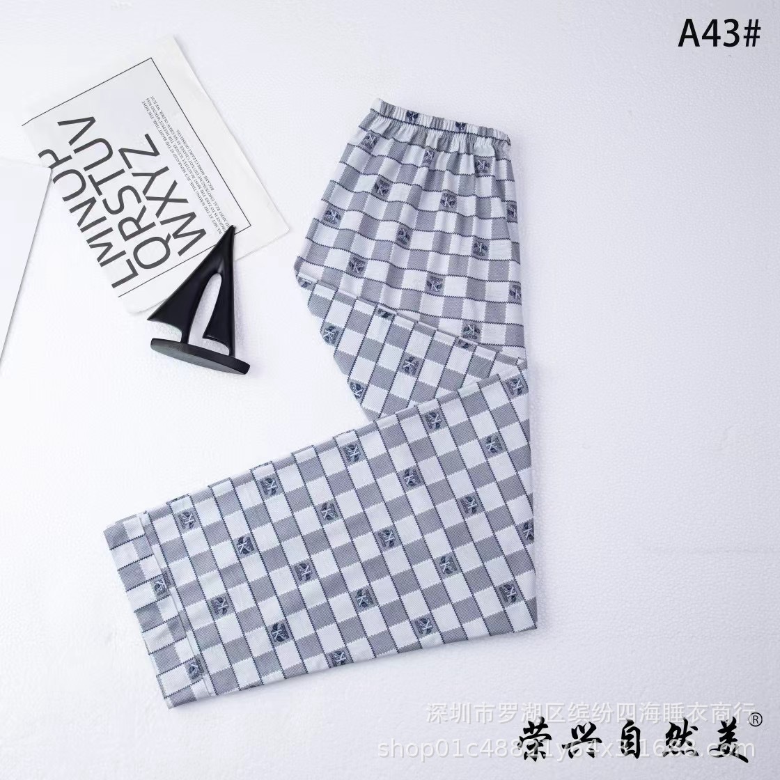 男性の睡眠ズボン男氷糸ズボン春秋夏のゆったりした大きいサイズの部屋のズボンのカジュアルな格子の部屋のズボンは外に着ることができます。