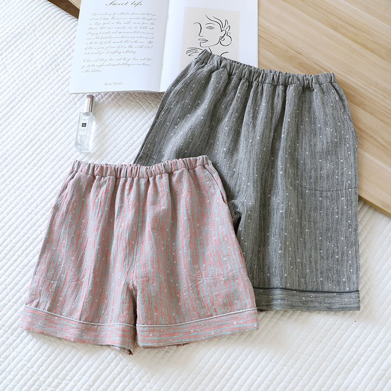 日系純綿二重ガーゼ男性半ズボン夏格子綿糸薄手ゆったりパンツ家居ズボン