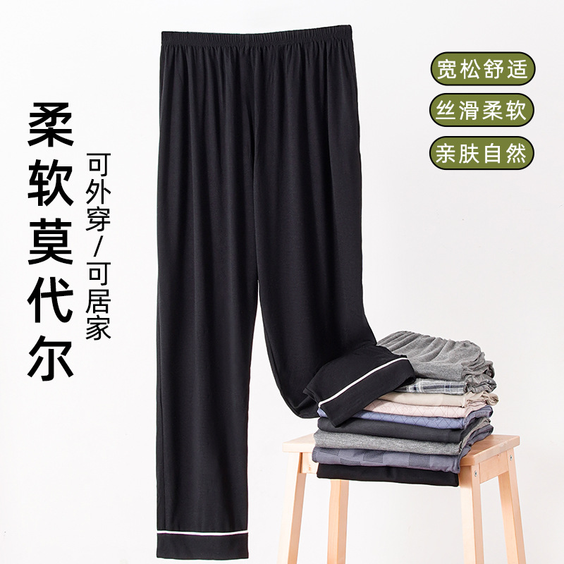 モーダルパジャマメンズ夏薄いカジュアルルーズ大きいサイズ 2025 新しいクール空調ルームホームパンツ