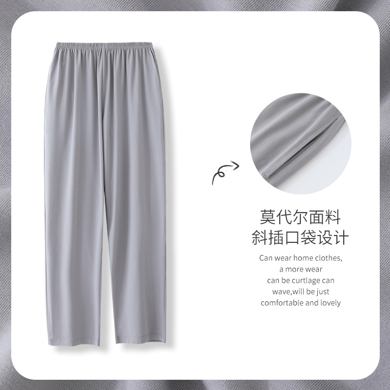 2025夏の新商品の寝ズボンの男性のモーダルの単一のズボンの家のズボンの春と秋の薄い純色の家は国境を越えて爆発します。