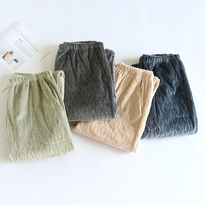 寝ズボン男2024新型冬三層綿を挟んでサンゴの綿毛のズボンを厚くします。