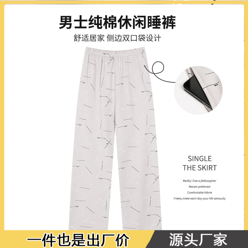 2025新型純綿パジャマ男性春秋タイプカジュアル純色ズボン男性ゆったりストレート家庭用ズボン