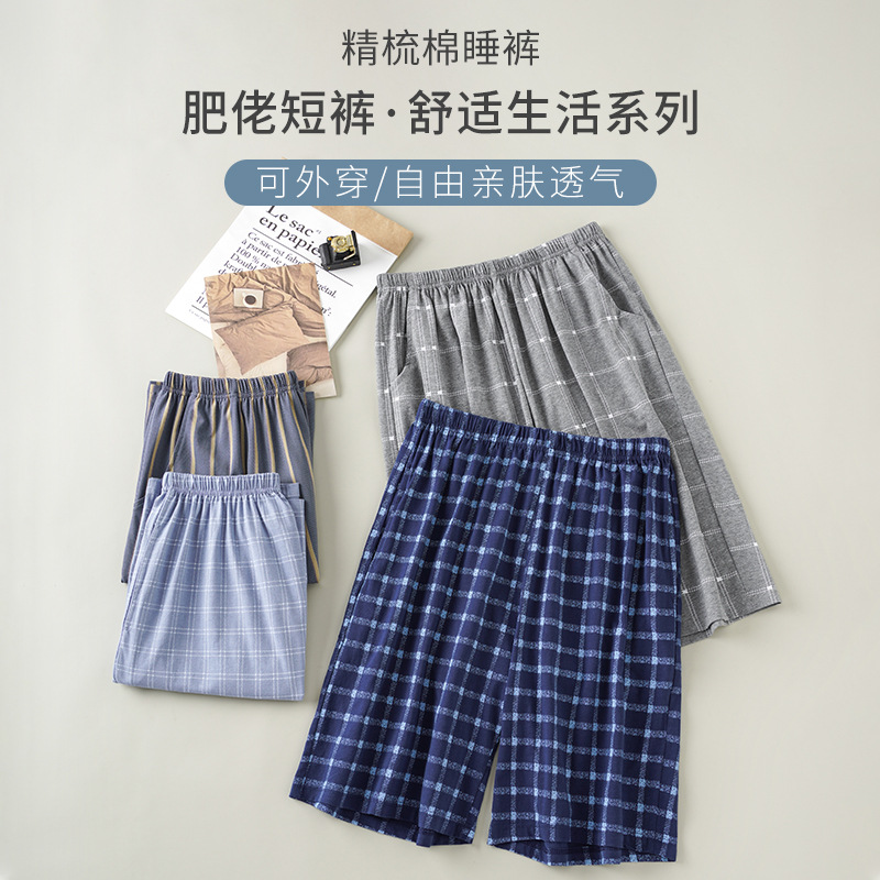 クロスボーダーパジャマメンズ純綿薄手の五分パンツ夏の大きいパンツプラスサイズカジュアルショーツホームパンツ卸売