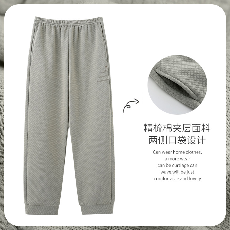 サンドイッチパジャマ男性ズボン秋冬ニット綿中厚大サイズカジュアルホームパンツ冬は保温ズボンを着ることができる