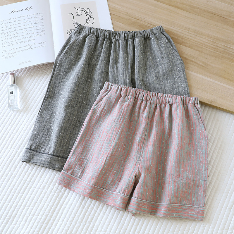 色織カップルパジャマ男性女性夏純綿ガーゼ薄いタイプのゆるいポケットパンツ家居ズボンビーチパンツ