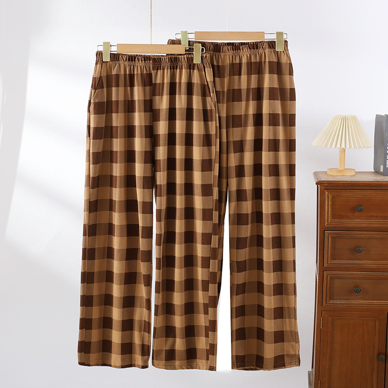 新しい春夏の薄いニットの家のズボンの純綿の格子の男性の睡眠のズボンのカップルは外で女性のカジュアルなズボンを着ることができます。